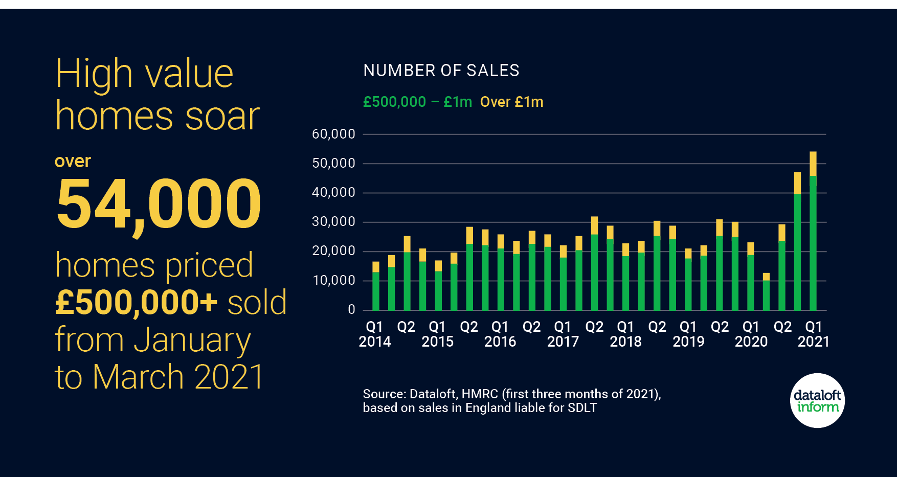 Data from the HMRC and the Welsh Revenues Authority indicate high value sales rocketed in the final three months of 2020 and into 2021, buyers saving money thanks to the Stamp Duty Holiday. Over 54,000 homes sold in England with a price tag in excess of £500,000 in the first three months of 2021, more than twice the average (based 2015-2019). In Wales more than 1,200 homes sold for over £400,000 during Q1, more than 560 properties in March alone (LTT, WRA). Top of the ladder properties are currently seeing the strongest level of price growth across the market according to Rightmove, such homes over £14,500 more expensive than 6 months ago.