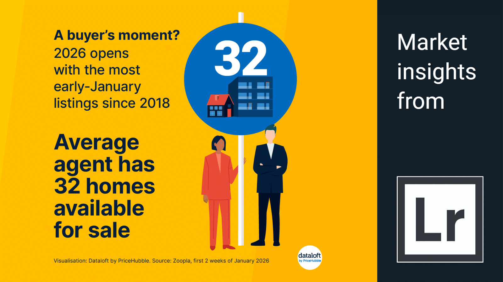 with the average agent having 32 homes for sale.However, not all of this is new supply. Around one-third of these properties were previously listed in 2025 and have since returned to the market after uncertainty in the final quarter of last year slowed activity.The rise in supply is most evident in southern England, with London listings up 16% year on year and the South East up 9%, as Budget uncertainty delayed sales into 2026.With greater choice for buyers and solid market fundamentals, 12-month sales expectations in the latest RICS survey are at their highest since late 2024.Visualisation: Dataloft by PriceHubble, Source: Zoopla, first 2 weeks of January, RICS.